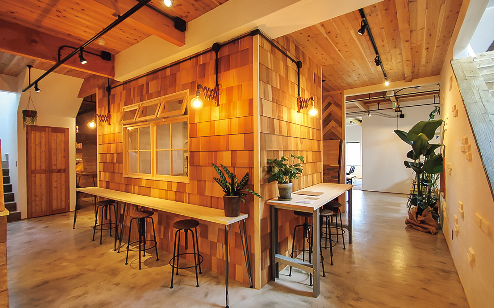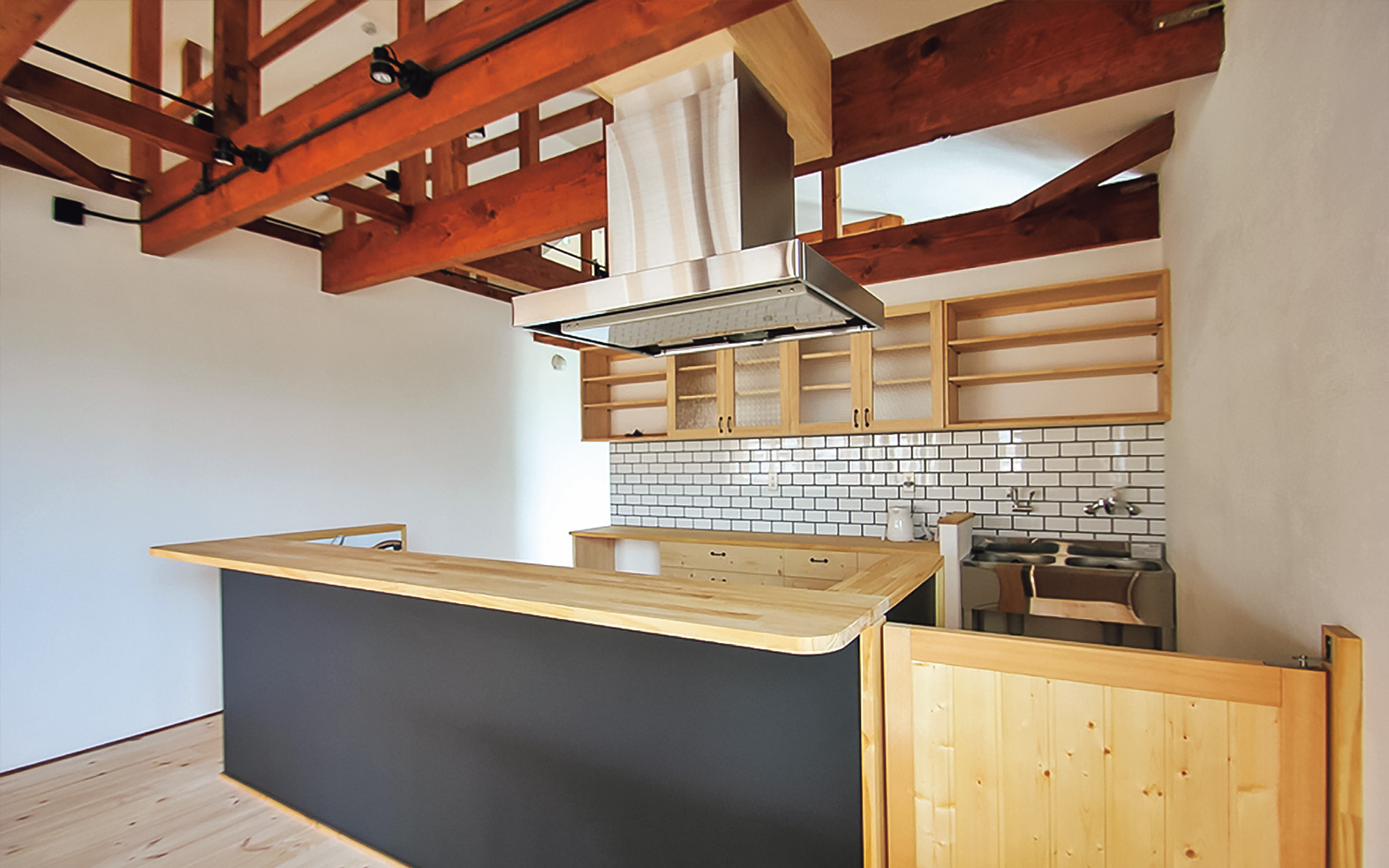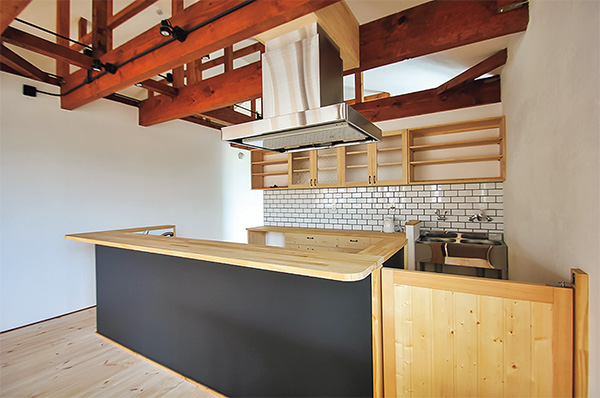 無垢の木と漆喰壁に包まれた開放的な空間。